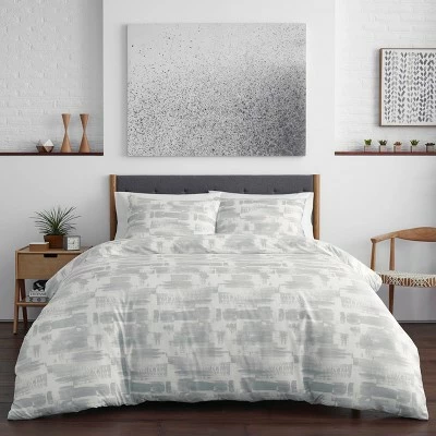 Style your bedroom as neutral territory with this modern brushstroke geometric in a minimal palette of silvery gray and white. Artistic and urbane, this bed set will provide a fresh update with a contemporary attitude for any room, whether in the city or the country. Twin comforter set includes one comforter (86″x66″) and one sham (21″x27″). Full/queen comforter set includes one comforter (92″x92″) and two shams (21″x27″). King comforter set includes one comforter (92″x110″) and two shams (21″x37″).