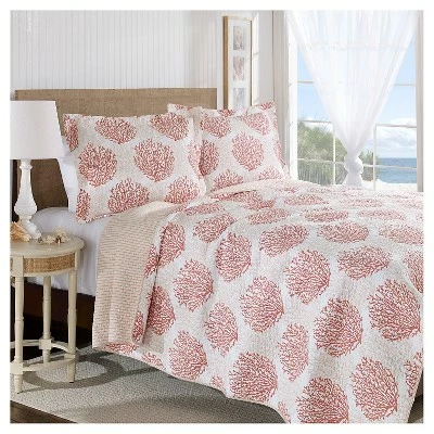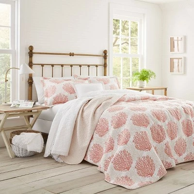 The Laura Ashley Coral Quilt Set is a beautiful way to update your bedroom. The plush quilting and cotton construction combine for supreme softness and comfort, and it reverses to a solid color for two separate looks.