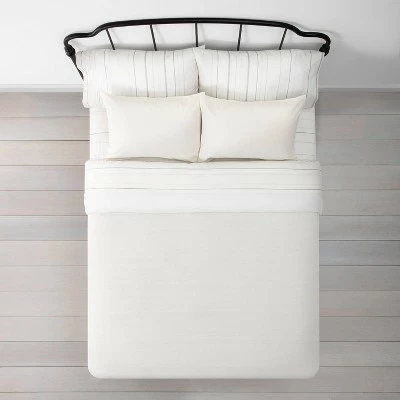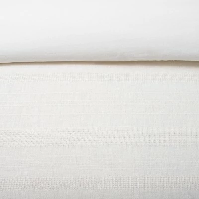 Create a crisp and refreshing aesthetic throughout your bedroom with this Textured Stripe Comforter and Sham Set from Hearth & Hand™ with Magnolia. Boasting a striped print on a crisp solid background for a clean look, this set includes a comforter and pillow sham/shams to perfectly complete your bedding ensemble. Crafted from ultra-soft and breathable fabric for lasting comfort, this comforter bedding set helps you sleep peacefully throughout the year. Plus, the shams have envelope closures to keep inserts neatly tucked in. The simple color scheme pairs easily with your existing decor, and the set is machine-washable for easy home care.