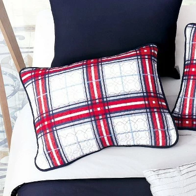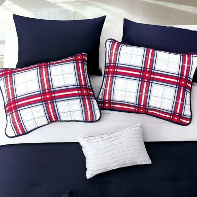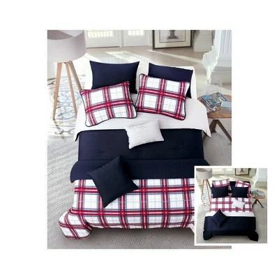 Update and refresh your restful retreat with the red/blue plaid design on the Red Plaid Layered Comforter and Coverlet Set from Riverbrook Home. This multi piece set is perfect for cozying up. Set includes comforter, coverlet, two decorative throw pillows and coordinating pillow shams. Machine washable for easy care and maintenance.