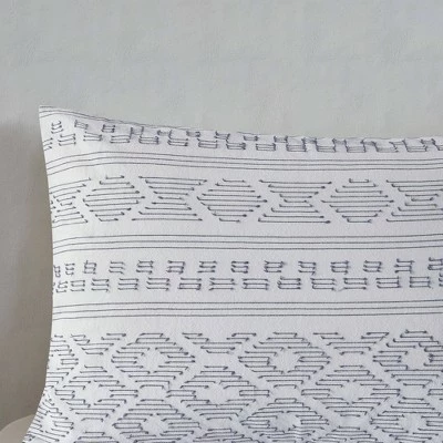 The Emerson 5pc Cotton Clip Jacquard Comforter Set offers a unique modern update to your bedroom. A one-of-a-kind clip jacquard in various geometric patterns on the soft cotton comforter base creates a chic contemporary look. Matching shams coordinate with the top of the comforter, while a square and an oblong decorative pillow adds complementary finishing touches to the clip jacquard bedding set. Hypoallergenic polyester filling in the comforter and pillows provide exceptional comfort and warmth. Pre-washed and pre-shrunk for extra durability and comfort, this 100% cotton clip jacquard comforter set brings a stunning touch to your decor and is machine washable for easy care.
