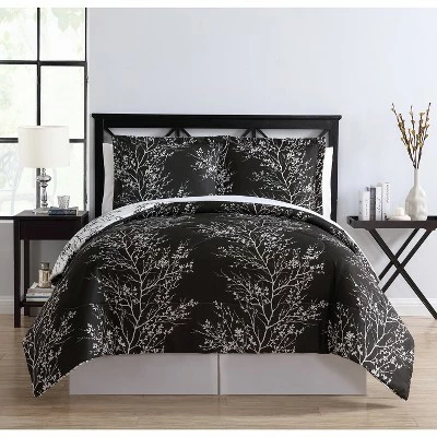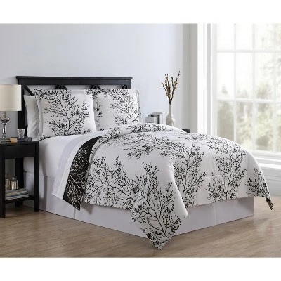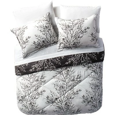 Bring nature-inspired beauty to your bedroom décor with the VCNY Home Black and White Leaf Bed-in-a-Bag Comforter Set. This reversible comforter features lovely leafy branches on both sides in black and white. Made of soft microfiber fabric, this 8-piece complete bed set includes a comforter, shams, flat sheet, fitted sheet, pillowcases, and a bedskirt—everything you need to makeover your bed in minutes.