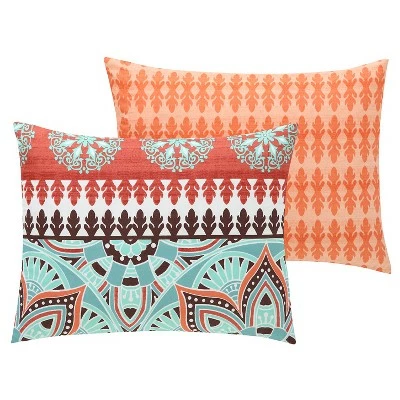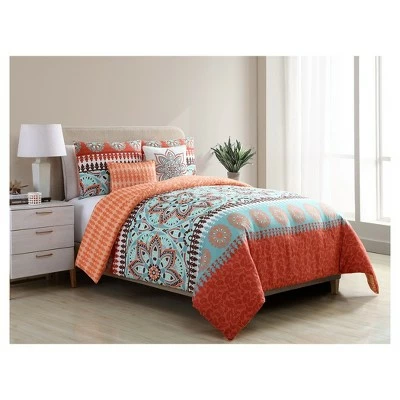 With striking layers of mixed patterns, the VCNY Home Ezra Reversible Orange Medallion Quilt Set is the perfect addition to any bohemian bedroom. The quilt features a multi-color paisley and medallion motif on one side which reverses to reveal a contrasting abstract patternβtwo gorgeous styles for one great value. Made of super-soft microfiber, the set also includes matching shams (one sham in Twin XL) and two decorative pillows to complete the look.