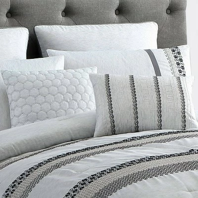 - Includes: 2 Decorative Pillows, 2 Euro Shams, Bed Skirt, Comforter, 2 Shams
