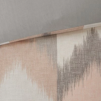 Elevate the beauty and style of your bedroom with the Alpine Duvet Cover Mini Set. This cotton duvet cover set flaunts a sophisticated ikat chevron print on the face with a solid reverse to create a striking modern and elegant look. The 2 matching shams coordinate with the design of the cotton duvet cover to complete this dynamic bedding set. This duvet cover set is OEKO-TEX certified, meaning it does not contain any harmful substances or chemicals, and uses an antimicrobial treatment that provides built-in freshness protection, reducing the growth of odor causing bacteria to keep fabric lasting longer. A button closure allows you to place a padded insert within the duvet cover and internal corner ties help prevent it from shifting (Insert is NOT included). Euro shams and decorative pillows are sold separately.