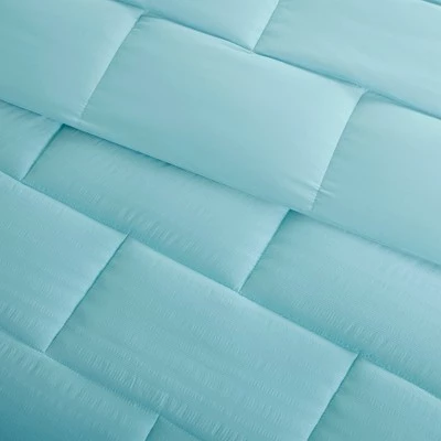 This comforter set adds a fun pop of color to your room. The seersucker technique and subway tile quilting adds texture and dimension to this solid comforter. The comforter reverses to a solid color. Made from a soft microfiber, this comforter is machine washable for easy care and OEKO-TEX certified, meaning it does not contain any harmful substances or chemicals to ensure quality comfort and wellness.