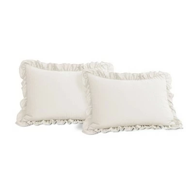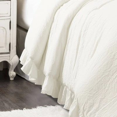 New from Lush Décor’s Reyna Collection is this beautiful comforter set with a frilly ruffled border which will brighten any bedroom. This set is perfect for the lovers of minimalist and shabby chic design styles. The ruffles on the quilt and the pillow shams create a whole new dimension to the bedroom. The Reyna Comforter Set is available an oversized Twin, so it will fit on a Twin bed or Twin XL bed. The Twin XL is a 2-piece set which includes a soft and luxurious 230 GSM comforter and one matching pillow sham. This style is also available in both Full/Queen size and King size in a 3 Piece Comforter Set has a calming effect, adding a touch of elegance with its frilly look on solid color. The Reyna 3 Piece Comforter Set includes a soft and luxurious 230 GSM comforter and two matching pillow shams. The pillow shams even have the same ruffled edges! It is available in many color options, including white, ivory, gray, blush, wheat, navy, lake blue, and light gray. Due to the delicate nature of the ruffles along the quilt and shams, your Reyna 3 Piece Comforter Set should be dry cleaned only. Oeko-Tex Certified.