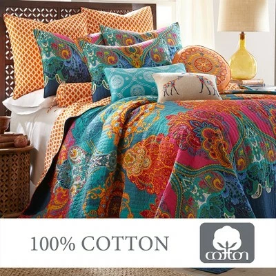 - COORDINATE YOUR ROOM DECOR: Create a wonderful bedroom space with our coordinated reversible matching bed set. The exuberant mix of pattern and color brings bohemian accents into your home and will match a variety of different looks and bedroom decor. You can also freshen your room with coordinating euro shams, throws, decorative pillows and drapes from the Levtex Home collection.