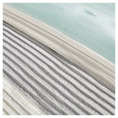 Made from polyester jacquard and a brushed fabric reverse this duvet cover is soft to the touch and is machine washable for easy care. The set includes two matching standard shams and three decorative pillows that accent the color blocked look.