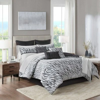 - Includes: 3 Decorative Pillows, 2 Euro Shams, Bed Skirt, 2 Pillowcases, 1 Flat Sheet, Comforter, Throw, 1 Fitted Sheet, 2 Shams