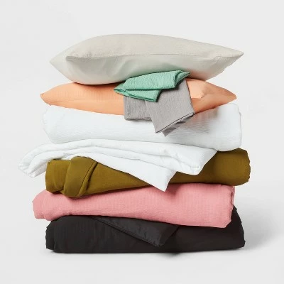 Fill your bedroom with timeless beauty with the Micro-Texture Bedding Collection from Room Essentials™. The bedding accessory collection includes a selection of comforters and shams in stunning solid hues to create an inviting ambiance in your master suite or guest room. Boasting a microfiber construction with soft filling, the solid textured comforters feel soft against your skin and ensure you stay cozy and comfy as you drift off to your dreamland. The solid microfiber shams have envelope closures for keeping the pillow inserts nicely tucked in. Plus, all the pieces in the microfiber bedding collection are machine washable for quick and easy maintenance.