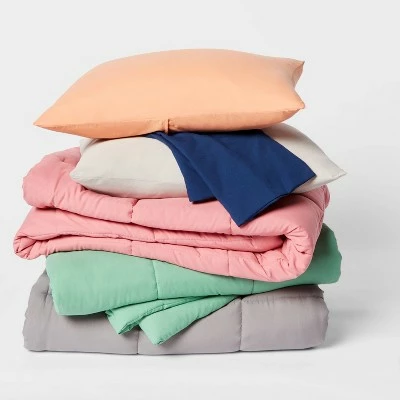 Outfit your bedroom with pieces from the Down Alternative Washed Microfiber Bedding Collection from Room Essentials™ and get a great night’s sleep . The bedding accessory collection includes a selection of comforters and shams in stunning solid hues to create an inviting ambiance in your master suite or guest room. Boasting a washed, microfiber construction with generous fluffy down-alternative filling, the solid quilted comforters feel soft against your skin and ensure you stay cozy and comfy as you drift off to your dreamland. The solid microfiber shams have envelope closures for keeping the pillow inserts nicely tucked in. Plus, all the pieces in the microfiber bedding collection are machine washable for quick and easy maintenance.