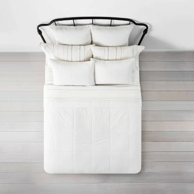 The Solid Quilt Collection from Hearth & Hand™ with Magnolia will add a layer of warmth and style to your sleeping nook. Designed with an elegant geometric quilted pattern over a pleasant soft-hued fabric, this bedding collection comes with a quilt and coordinating pillow shams and it’s easy to match with any bedroom decor. Plus, the shams have simple envelope closure at the back for a smooth look and added convenience.