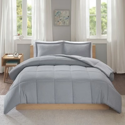 Get cozy and comfortable with the Miles Reversible Plush to Heathered Microfiber Comforter Set. The face of the reversible comforter flaunts heathered yarn-dyed microfiber fabric in a rich hue that reverses to a frosted print plush, for an ultra-soft look and feel. Matching reversible sham(s) mirror the styling of the comforter and feature zipper closures, while an all-over box quilting on the plush comforter prevents the hypoallergenic down alternative filling from shifting. This down alternative comforter set is machine washable for easy care and is OEKO-TEX certified, meaning it does not contain any harmful substances or chemicals to ensure quality comfort and wellness. Set includes: 1 comforter and 2 shams (1 sham for Twin sizes).