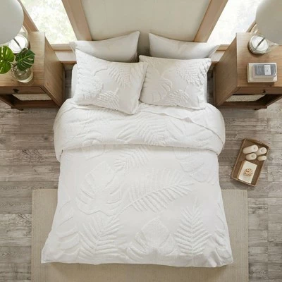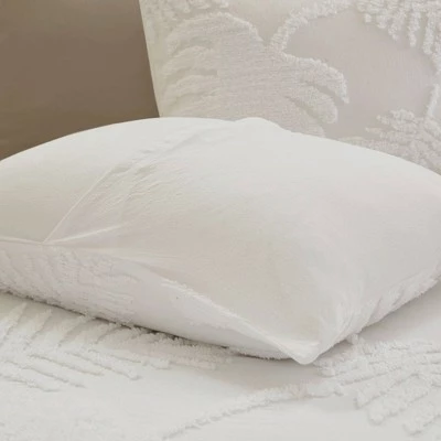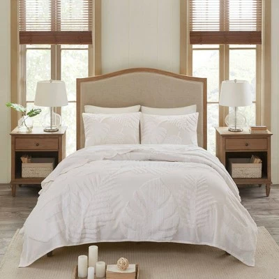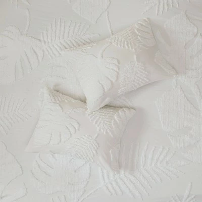 Bring a coastal charm to your bedroom with the Ceiba 3pc Tufted Cotton Chenille Palm Coverlet Set. The 100% cotton chenille coverlet features tufted tropical palm leaves on the face for a casual coastal allure. Matching shams mirror the design of the coverlet, completing the tropical coverlet set. Machine washable for easy care, this tufted cotton chenille coverlet set is light, drapable, and serves as the perfect complement to a beach style bedroom decor. Due to the nature of the chenille fabric, some shedding will occur naturally in the first 3-4 washes.