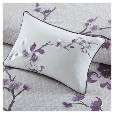 The Sakura 7pc Cotton Sateen Printed Duvet Cover Set will add charm and elegance to your bedroom dΓ©cor. A lovely floral pattern is beautifully printed on the cotton duvet cover. Matching shams gracefully spread the floral motif to the head of the bed, while the Euro shams provide a pleasant touch of neutral color. Two decorative pillows complete the look using fabric manipulation and embroidered details for added dimension and texture. Machine washable for easy care.A button closure helps secure a comforter insert within the duvet cover and four inside ties in the corners help prevent it from shifting (insert is NOT included).