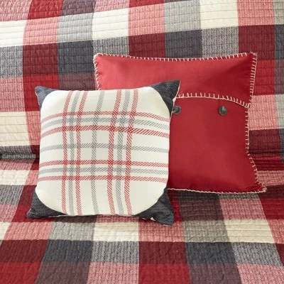 For an irresistibly warm and comfortable look, this Warren 6pc Herringbone Quilted Reversible Coverlet Bedding Set is the perfect update to your space. This rich quilted coverlet sports a bold buffalo plaid pattern that is printed on the herringbone fabric. The striking design gives way to a herringbone printed border at the foot of the bed for additional charm. Coordinating shams mimic the style of the coverlet, enhancing the warm and cozy lodge aesthetic. Three decorative pillows with hand-stitched embroidered details bring texture and dimension to the top of the bed. Machine washable for easy care, spot clean on decorative pillows, this quilted coverlet set brings an extravagant and stylish touch to your bedroom.