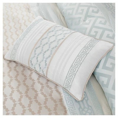 The 7-Piece, William Greek Key Print Comforter Set will please both you and your partner. Boasting an intricate mix of classic and contemporary patterns and complete with 3 accent pillows and a bedskirt, this comforter set is a quick and easy way to add a fresh new look to your bedroom décor.
