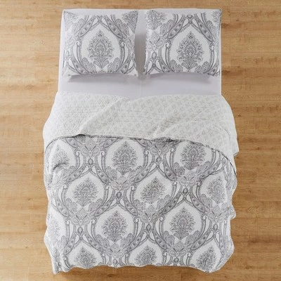 - LEVTEX NOVARA QUILT BED SET: The luxurious grey and white medallion bedding set can be used by itself, as a layering piece or as a bedspread, this bedding set is extremely versatile.