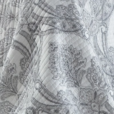 The Novara Reversible Quilt Set by Levtex Home is inspired by ancient architecture and sculptures. This intricate grey medallions design will immediately transform your bedroom. Made with the softest lightweight cotton, this reversible quilt features a dense, intricate grey medallion pattern on white, reversing to a simple grey medallions on white quilt on the other.