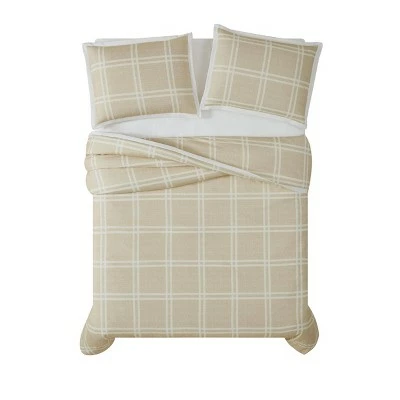 This easy to coordinate large scale window pane print is a great coordinate to a modern room or a simple coordinate to finish a bedroom. The cloth uses a white textured double line plaid print on a solid color base cloth. The base cloth is a 100% microfiber polyester. Face and back is 100% microfiber. This item is machine washable, but please be sure to use appropriate sized machinery to avoid any excess wear on the items.