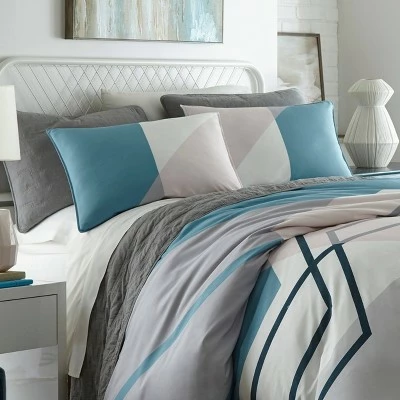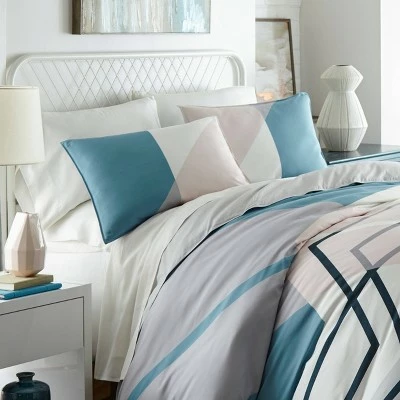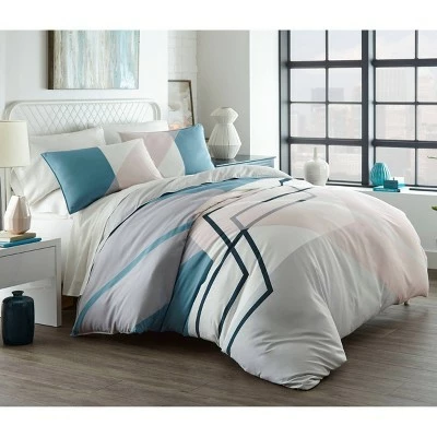 Bring modern sophistication to your bedroom dΓ©cor with the City Scene Thornton Duvet Cover Set. Intersecting lines of pastel blue and pink on a crisp white ground, add a modern touch to this digitally printed ensemble. Constructed with soft and silky microfiber, the Thornton duvet cover reverses to solid baby blue that contrasts the abstract face. Artistic and urbane, this bed set will provide a fresh update with a contemporary attitude for any bedroom. Coordinating shams mimic the face of the duvet cover and feature a European closure. Duvet cover features a zipper closure with additional inner corner ties and is machine washable for easy care. Duvet insert sold separately. Twin Duvet Cover Set includes: One twin duvet cover (88″LX68″W) and one standard sham (21″LX27″W), Full/Queen Duvet Cover Set includes: One full/queen duvet cover (88″Lx88″W) and two standard shams (21″Lx27″W), King Duvet Cover Set includes: One king duvet cover (88″Lx104″W) and two king shams (21″Lx37″W)