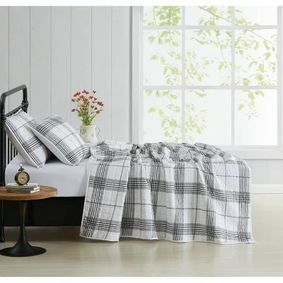 Best Sale βœ”οΈ Cottage Classics Cottage Plaid Quilt Set White/black πŸ”₯