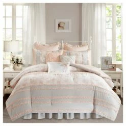 - Cottage and shabby chic style 9 piece comforter set in cotton fabrication