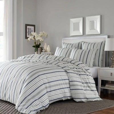 Timeless and always fresh, a Slate Blue and Gray on white shirting stripe is a simple and stylish update for any bedroom. Scaled up in size for bigger impact, this casual stripe offers a relaxed and inviting look that is perfect for any season.