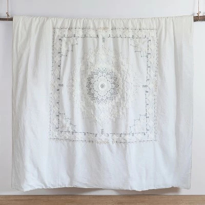 - THE HARLESON MEDALLION DESIGN: One of our most popular sets, Harleson Medallion is contemporary bohemian. The front is a tufted grey and cream bordered mandala pattern on white and the reverse is solid white 100% cotton. The comforter is filled with soft, hypoallergenic 100% polyester.