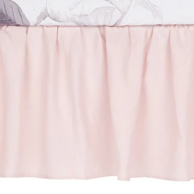 - Shirred pink linen blend crib skirt with split corners for easy placement