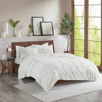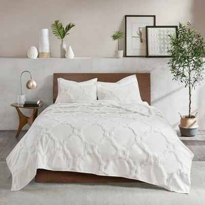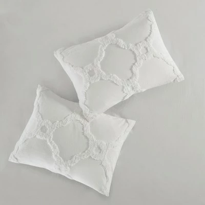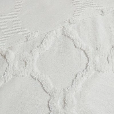 Refresh your bedroom dΓ©cor with the charming style of the 3pc Leena Tufted Cotton Chenille Geometric Coverlet Set. Made with a 100% cotton, this luxurious chenille design in an all-over geometric pattern that adds a soft texture to the bedding set. The matching shams perfectly coordinate with the coverlet to create a classic shabby chic look. Perfect for summer use or added layer to a comforter for cold season. Machine washable for easy care, this cotton chenille coverlet set provides a delightful and captivating update to your bedroom. Due to the nature of the chenille fabric, some shedding will occur naturally in the first 3-4 washes.