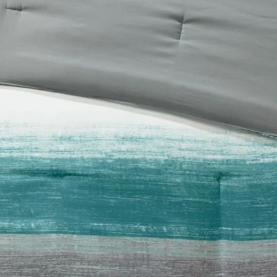 The Seth Complete Comforter and Cotton Sheet Set provides a modern update to your bedroom. A watercolor stripe print is beautifully displayed on the ultra-soft microfiber comforter. The matching shams (1 in Twin Sizes) mirror the pattern of the comforter, while an embroidered decorative pillow and a solid grey bed skirt to complete the bedding set. A coordinating textured cotton sheet set is also included to complement the casual style of the comforter. Bringing the best in health and wellness, this bedding set also features an anti-microbial treatment that provides built-in freshness protection, reducing the growth of odor causing bacteria and keeps fabric lasting longer. This bedding set is also OEKO-TEX certified, meaning it does not contain any harmful substances or chemicals, ensuring quality comfort and wellness.