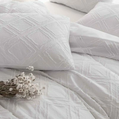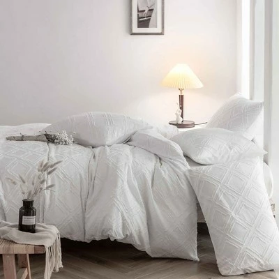 The clipped jacquard designed duvet cover set with special geometric dimond pattern or wave pattern brings unique and stylish look to your bedroom, dressing up your comforter or duvet. Designed with a long zipper closure for convenience, it is easy and quick to use, also high quality zipper is sturdy and durable for a long-time use. The 4 corner ties inside of the duvet cover help to secure your duvet or down comforter in place to prevent it from curling up or slipping, making your night sleep more comfortable. Envelope pillowcase ensures that your pillows stay securely in place during the whole night. This duvet cover set with one duvet cover and two pillowcases(ONLY ONE pillowcase in Twin Size) is a perfect choice for you as it is suitable for all seasons.