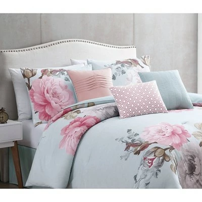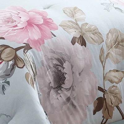 Ridgely the 7 piece Collection from Riverbrook Home is sheer perfection. The cotton printed Comforter features an elegant large scale floral design in soft and muted tones to create this stunning yet simple look. Absolutely everything you need to transform your space into your dream room. Set includes comforter, 2 shams, bedskirt and 3 decorative pillows. Machine washable for easy care.