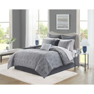 - Includes: 2 Pillowcases, 2 Euro Shams, 1 Flat Sheet, Bed Skirt, 1 Fitted Sheet, Comforter, 2 Shams, 2 Decorative Pillows