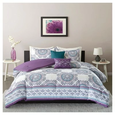 Create a clean yet colorful update to your space with the Camryn Medallion Printed Comforter Set with Decorative Pillows. The bright ground beautifully highlights the medallion pattern on the comforter, while a decorative border creates the perfect finish. Two decorative pillows use fabric manipulation and intricate floral embroidery to create a cohesive look.