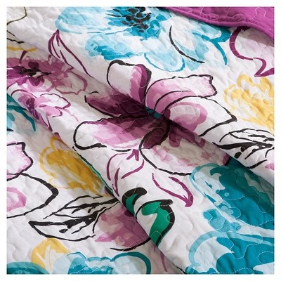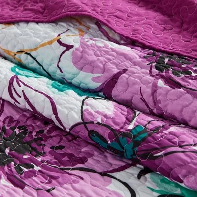 - β’ Asymmetrical floral print coverlet set on soft microfiber