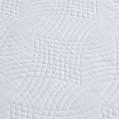 The Laura Ashley Trellis daybed combines modern elegance with timeless style. A delicate trellis stitch covers the classic white daybed and shams. Coordinating 14×36″ bolster pillow cover can be used for a comfy backrest. This versatile daybed cover fits any dΓ©cor and can be used in a bedroom, living room or home office. Made of 100% cotton with a cotton (80%)/polyester (20%) filling and 100% polyester reverse, it is lightweight for year-round use. The set includes 1 quilt, 2 standard shams and 1 pillow cover. Machine washable, for easy care.