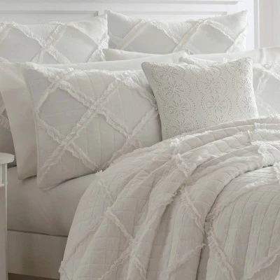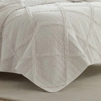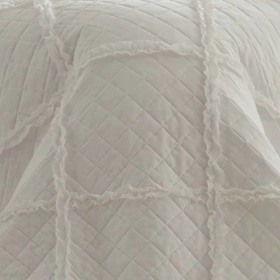 Whether you coordinate with white sheets for a pristine look or style with printed sheets for a colorful touch, this Laura Ashley Maisey Quilt Set from Fieldcrest® will help create an elegant, restful retreat for you. Crafted from 100% cotton for an ultra-soft texture, this quilt set is brimming with charm. Featuring lovely ruffle detailing on a diamond-quilted base, this white bedding set blends effortlessly with any color palette. Lay this Maisey quilt set on your bed to add a soft, elegant touch to your space.