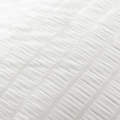 Refresh your master bedroom or guest bedroom with this Farmhouse Seersucker 5 Piece Comforter Set. The soft comforter will keep you warm and cozy year-round. The minimalist solid color textured look brightens the space without overwhelming the room. This Farmhouse Seersucker 5 Piece Comforter Set is ideal for a master or guest bedroom in just about any home decor theme. Whether you love modern, traditional, minimalist or farmhouse style home decor, this set can fit right in with any of those. The textured stripes on the comforter and the pillow shams create a whole new dimension to the bedroom. The texture of the Farmhouse Seersucker 5 Piece Comforter Set has a calming effect, while also adding a touch of elegance to the space. The Farmhouse Seersucker 5 Piece Comforter Set includes a soft and luxurious 200 GSM comforter, two matching pillow shams and two decorative throw pillows to give your bed a complete and styled look. It is available in both King and Full/Queen sizes in white or light gray. For your convenience, the comforter and shams are safe to machine wash and tumble dry. Please spot clean the decorative pillows. Refer to care labels for full care instructions.