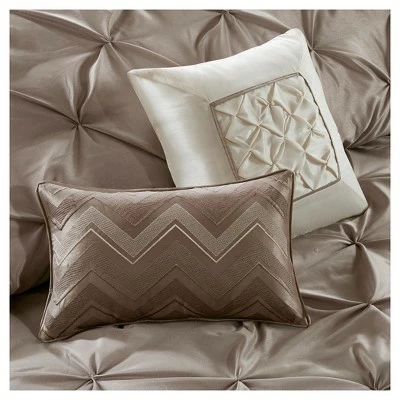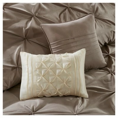 - Includes: 2 Euro Shams, 4 Decorative Pillows, Bed Skirt, 2 Pillowcases, 1 Flat Sheet, 4 Curtain Tiebacks, Comforter, 1 Fitted Sheet, 2 Shams