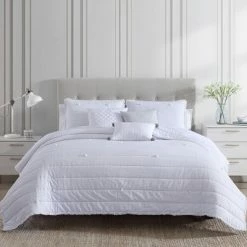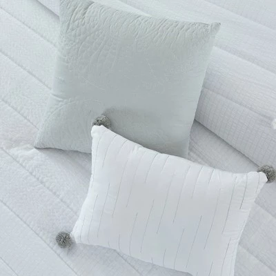 Add a touch of contemporary flair to your bedroom with This Marie Claire Washed Microfiber 5-Piece Quilt Set. Complete with quilt, two shams, and 3 decorative Pillow Covers, this set is the perfect addition to any bedroom! Amazingly soft and luxurious the detailed quilting will add a great touch to any bedroom. Reverses to a matching solid color for multiple decorating options. Microfiber stitching adds to the softness and durability. Soft and inviting, this is an ideal set for any time of the year. Set is machine washable