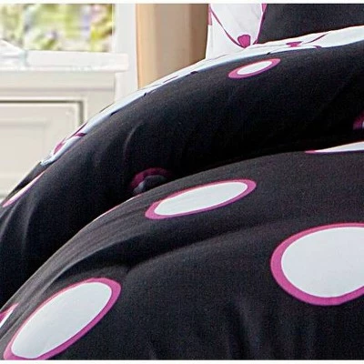 Add playful personality to your childβs space with the VCNY Home Sophie Polka Dot Bed-in-a-Bag Comforter Set, which features pretty polka dots and bows. Made of soft microfiber, the comforterβs oversized polka dots are beautifully offset with bow accents, a motif that is carried throughout the shams, flat and fitted sheets, pillowcases, and decorative pillows for a perfectly coordinated look.