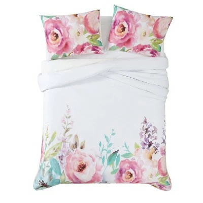 Spring flowers dominate the face of the Christian Siriano printed bed pattern. The large scale bouquets rise from the base to a pure white finish at the top. The floral pattern uses shades of purple pink, peach and teal for a bright and fresh look. The fabric is a smooth and soft 200 thread count, 100% cotton sateen woven cloth and the reverse is also 100% cotton, so you are always touching natural fibers. The ensemble comes complete with pillow shams to complete the top of the bed. Face and back is 100% cotton. This item is machine washable, but please be sure to use appropriate sized machinery to avoid any excess wear on the items.