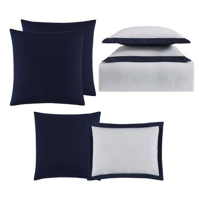 - Includes: 2 Decorative Pillows, 2 Pillowcases, Comforter, 2 Shams