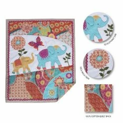 - ADORABLE BOHO ELEPHANT THEME: Youβll think youβre in a bohemian fantasy. The fitted sheet features a bright geo pattern set off by a sparkle burlap and ric rac trim. The quilt features appliqued, embroidered elephants, fun boho fabrics, sparkle burlap and ric rac. Our diaper stacker has an appliqued, embroidered elephant, while the large nursery wall decal depicts fun elephants and a kaleidoscope of butterflies in fun bright colors and with the words YOU ARE SO LOVED, completing your nursery.