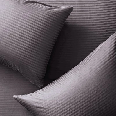 Transform your bedroom into a cozy resting retreat with the 400-Thread Count Damask Solid Sheet Set Collection from Threshold™ Signature. Made from 100% cotton and featuring a 400-thread count construction, each piece in this bedding collection feels soft to the touch and ensures you stay comfy as you recline to relax or toss those shoes to catch some Z’s. This decorative bedding collection includes a variety of fitted sheets, flat sheets and pillowcases in various hues with each featuring a classic striped pattern that seamlessly blends with your existing bedroom decor for an easy, yet striking update.