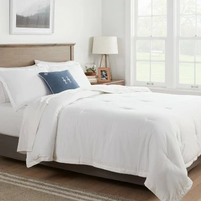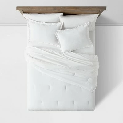 Enjoy a good night’s rest with the Cotton-Linen Chambray Comforter & Sham Set from Threshold™. This woven bedding set includes a twin-size comforter and a pair of standard pillow shams, each made of a soft cotton-linen fabric blend for a smooth, ultra-soft feel. The multi-piece comforter bedding set comes in a soft, solid hue that’s easy to coordinate with your existing linens for a polished look. Use the set in your dorm or bedroom, and complete the look by adding sheets and decorative pillows of your choice.