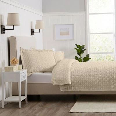 A soft and cozy quilt is something that we can all look forward to at the end of a long day with our Emeline quilt set. The crushed microfiber adds a bit of unique texture throughout this entire solid 3-piece quilt set. This quilt is designed for all seasons, so it won’t need to be changed when the seasons do, leaving you to spend more of your time with loved ones. The Emeline quilt set is durable, easy to wash, and is available in 3 calming colors.